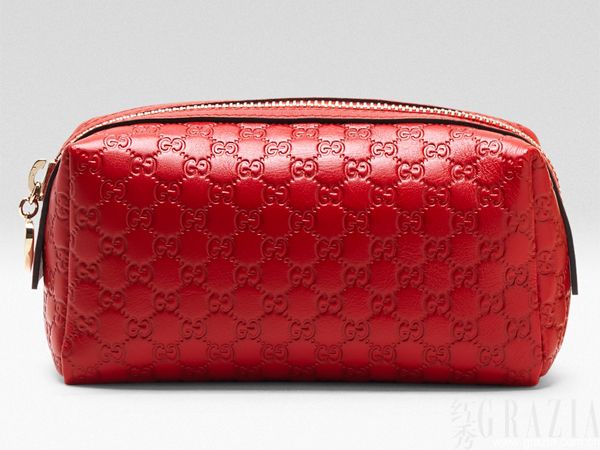 贴心设计的金属包链,使它即刻变身晚装包。红色Guccissima印花首次被极为创意地运用于洗漱包的设计上,让洗漱时间也变得有情调起来,它便于携带,出差也有好心情。
