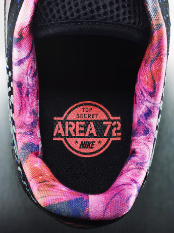 AREA 72系列沿袭了Nike Basketball过往的多款经典鞋型,并融入了银河纹理,设计有反光以及荧光效果。该系列5个鞋款都是在Area 72绝密试验设施内开发,最大特色是定制的银河图案装饰,与Nike Basketball休斯顿周末篮球明星赛特别版战靴的图案保持一致。每一鞋款的鞋领处也都采用了该纹理图案。