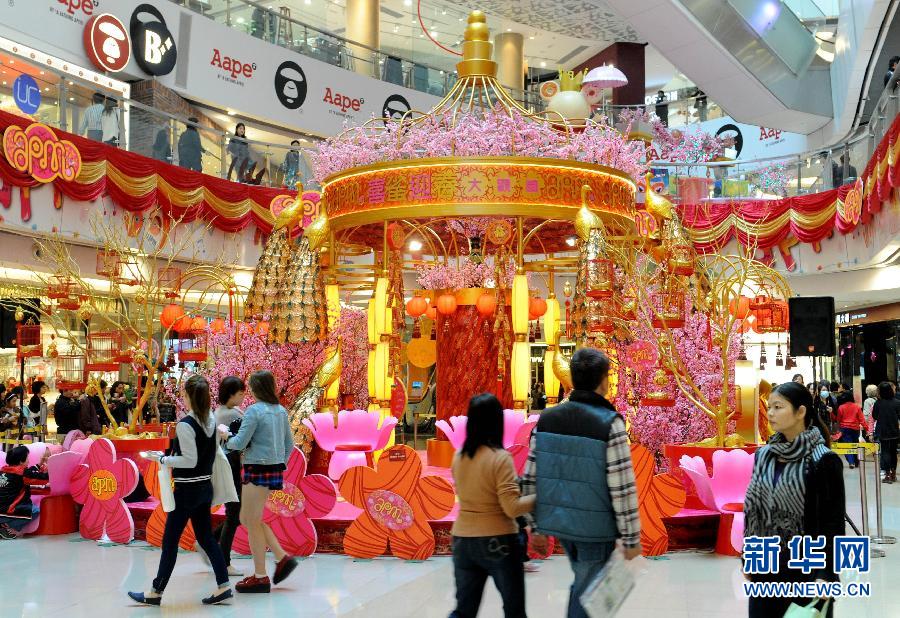 随着蛇年春节的临近,香港各大商场纷纷装饰一新,让市民和游客在购物的同时,感受春节即将到来的氛围。 香港:张灯结彩喜迎新春