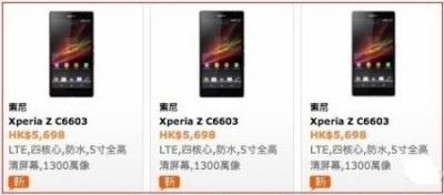 索尼Xperia Z无疑是当前最受期待的新机之一,只是目前官方对该款手机的上市日期及建议零售价格依然是守口如瓶。不过,日前在香港零售商丰泽的网站上,索尼Xperia Z港行的售价还是被提前泄露。据悉,该机港行的型号为C6603,建议零售价格为5698港币,约合人民币4571元左右。