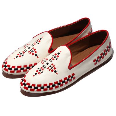 TORY BURCH 白红色织皮平底鞋 / 售价待定