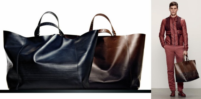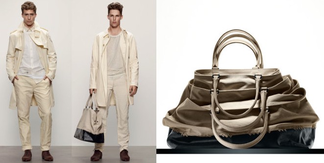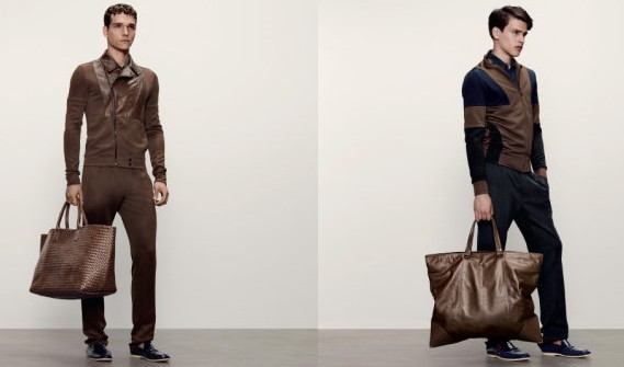 宝缇嘉(Bottega Veneta)2013春夏男士服饰为男士提供各种配搭包包的服装造型,新季的男士包款偏向大容量设计,配上机车风斜拉链皮衣,男士们可以马上骑上机车拉风去了;而披上一件及膝风衣内里穿上同色系的西服套装,再手挽大容量包包,一副潇洒贵公子形象自由而生。本季宝缇嘉就是要告诉您配搭包包的N种可能。