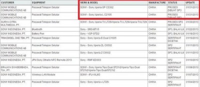 腾讯数码讯(水蓝)或许你对代号“Huashan”的索尼C5303还有一些印象,现在这款新机又有了最新的消息。根据印度尼西亚电信审核机构公布的资料显示,索尼有两款新机Xperia SP C5302和Xperia L C2105通过了相关测试和审核。其中,索尼Xperia SP便是此前曝光的 “HuaShan”,其手机的型号将会有M35h和M35c两个版本。
