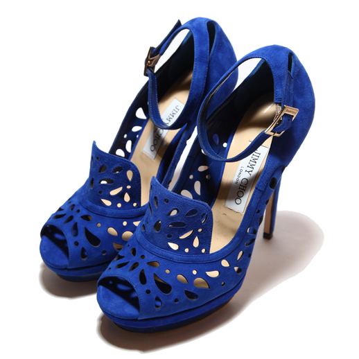 JIMMY CHOO 蓝色通花麂皮高跟凉鞋