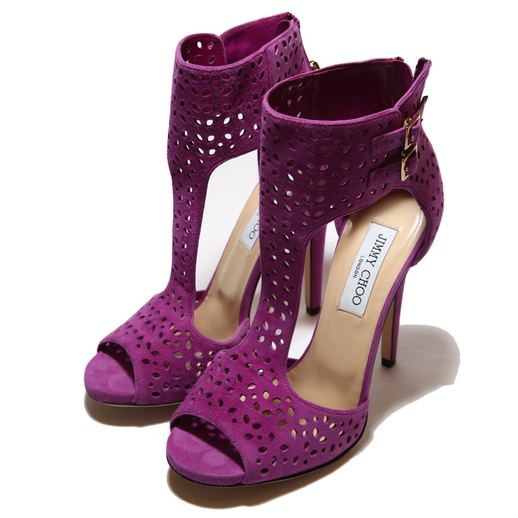 JIMMY CHOO 深紫色通花麂皮高跟凉鞋