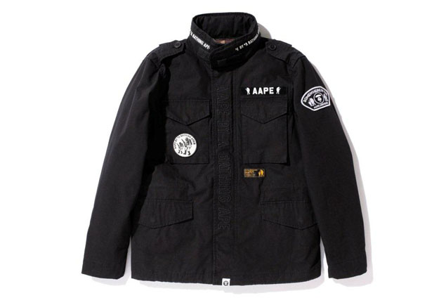 Aape上个秋冬季分别推出了MA-1及N-3B的军褸及羽绒款式,今季选来M65美国军褸型号,设计师特意保留M65四袋及肩上搭带的原有设计特色,同时於衫身加上Aape独有的Foot Soldier车花章,令Aape推出的M65军褸既经典又不失独特性。顏色除了百搭黑色,还有Aape少不了的迷彩花样。 是次系列另一瞩目点必定是Pocket Foot Soldier Print Tee, 简单的Pocket Print Tee加上重军事味的Aape logo车花章及口袋上印有Foot Soldier Print,誓必成為追捧的军Look配衬单品!