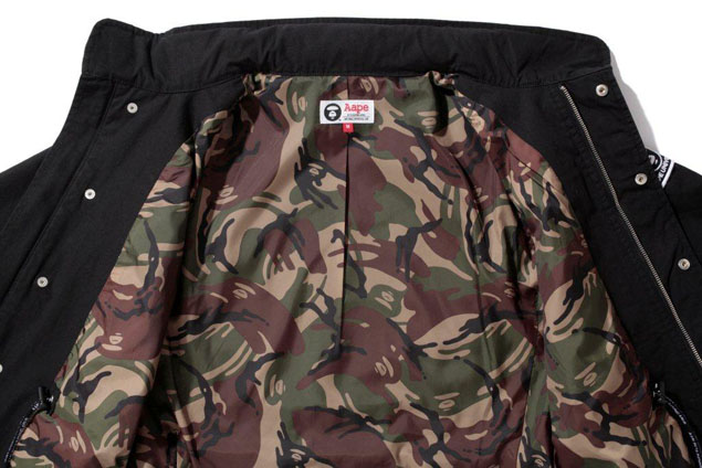 M65军褸、军事Print Tee仍不足以成就军Look打扮,Aape的设计师继续秉承品牌的理念,走出传统框框,一路创新,传统的军Look多配以军绿或迷彩军裤等单调的配衬,而Aape设计师则将军事原素与自家Loose Fit剪裁牛仔裤结合,并在牛仔裤上加上多个不同军事车花章,亦於裤后袋印有系列灵魂Foot Soldier的图案,令是次Foot Soldier系列更完整及為爱作军事打扮的潮人提供多一个选择,一洗军Look只有一板一眼的刻板形象。