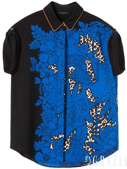 宝蓝色印花短袖衬衫(Louis Vuitton)