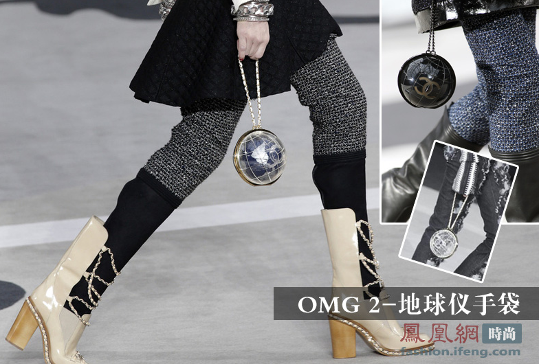巴黎,Chanel 2013秋冬大秀上演。凤凰时尚为你盘点七大Oh My God单品。单品2-地球仪手袋。