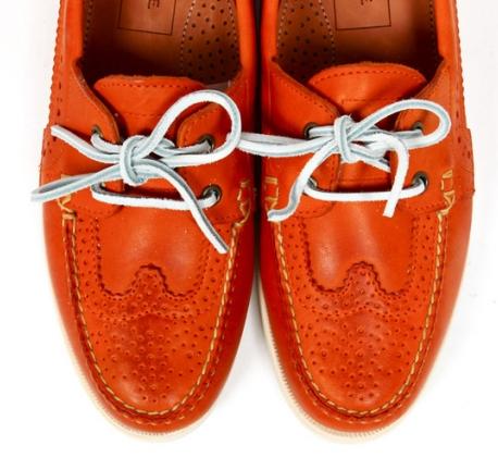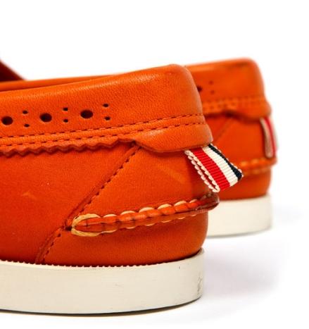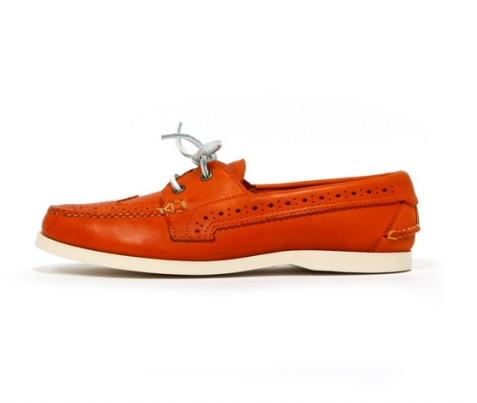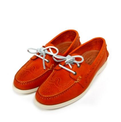 这款鞋的特点正是Wingtip 与Deck Shoe的奇妙组合,采用了tru-moc 的构造,整体效果着实不错。鞋款的橙色的皮革外身搭配上灰白色方型皮革鞋带也有出奇的表现。刚刚进入充满朝气的春季,穿上如此一双出挑的鞋款绝对非常适宜。