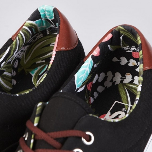 VANS再推夏威夷系列鞋款!此番最新的Era 59 “Aloha C & L”非常适合时下日渐转暖的天气。鞋身以纯色帆布为底,复古热带花卉图案为衬,后跟细节则运用棕色皮革,而鞋带颜色更是与皮革颜色相呼应,足以体现设计上的用心。而配色方面更会让一众粉丝爱不释手,黑白百搭色加上宝蓝的映衬,是不是都想一并入手了?