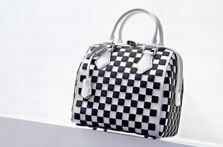 (左) 以崭新手法将 Damier 演绎,是採用传统地毯编织手法製造的手袋。