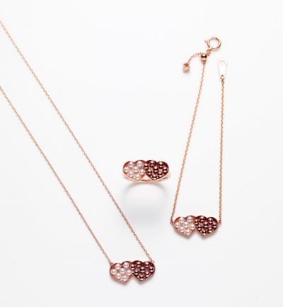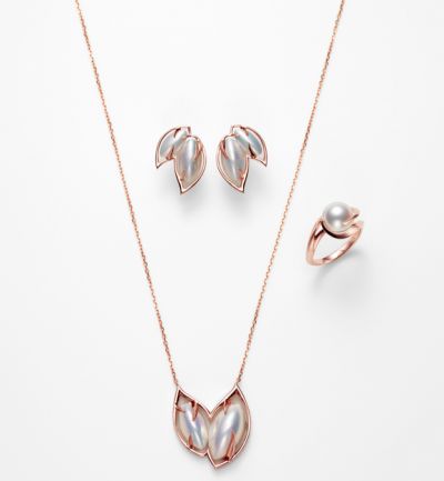 Heart to heart心心相印 项链:淡水珍珠,18K樱花金;戒指:淡水珍珠,18K樱花金;手链:淡水珍珠,18K樱花金。两颗柔软的心交织重叠在一起融为一体,深沉的爱将他们牢固的联合在一起,永不分离!淡水珍珠及金属的混合,让彼此融入化成充满魅力之眼。TASAKI奇幻梦境的灵感和设计理念源自品牌的创意总监Thakoon Panichgul,纷繁的色彩和轻柔的外形,散发着魔力般的气息。