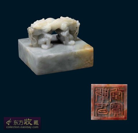 图片说明: 清嘉庆“敷春堂宝”交龙钮玉玺