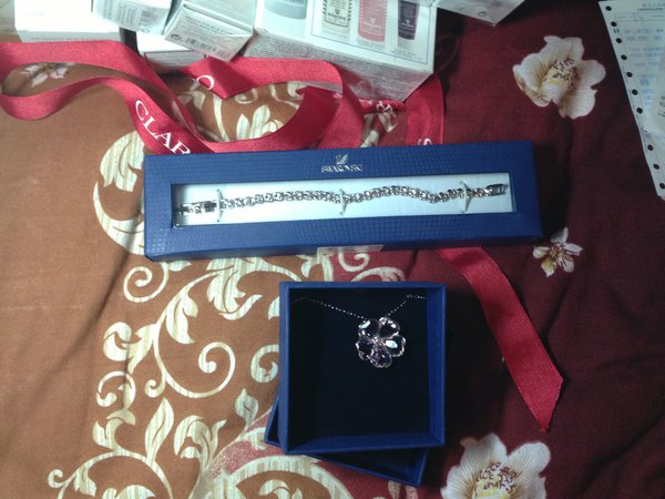 购于DFS的施华洛世奇,上面的手链是1370港币,75折。下面的项链1220港币,75折。