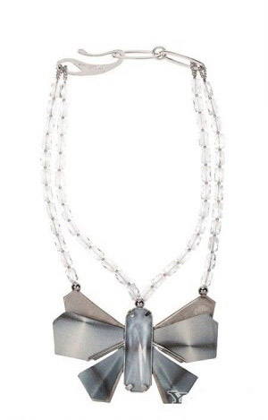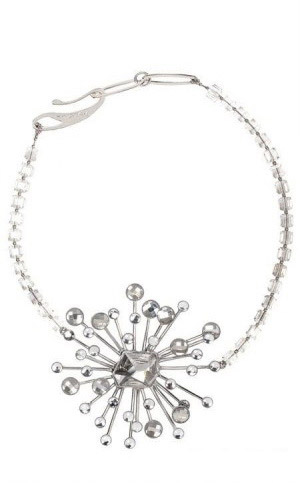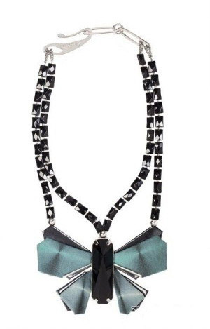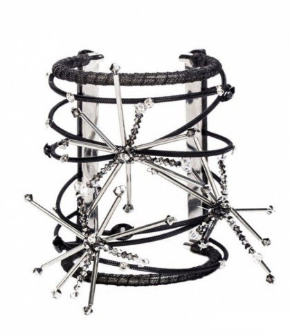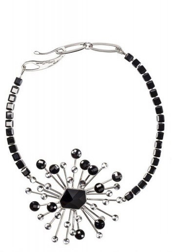 Giorgio Armani 2013春夏的配饰系列以星星、蝴蝶为主元素,搭配黑色宝石和天然宝石,虽然是女性化的灵感元素却在在款式设计上与硬朗化的金属线条感相结合,使首饰在夸张造型中不失浪漫色彩。