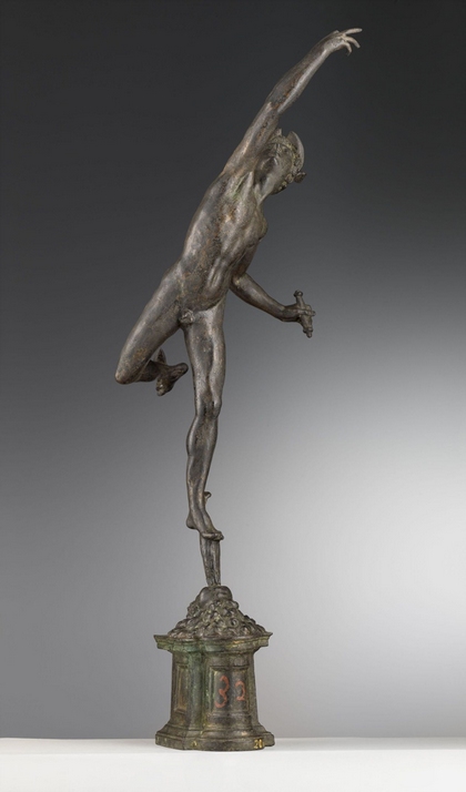 法国文艺复兴后期雕塑家詹波隆那(Giambologna),《墨丘利》,1580 年后。被认定为 17 世纪作品。焊接青铜像,带底座,58 厘米(高)。Inv, 204 B,佛罗伦萨,巴杰洛国家博物馆。