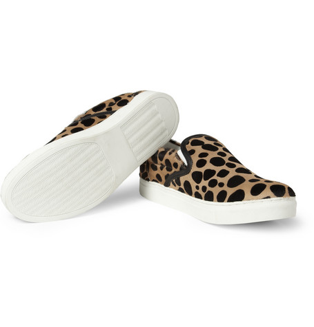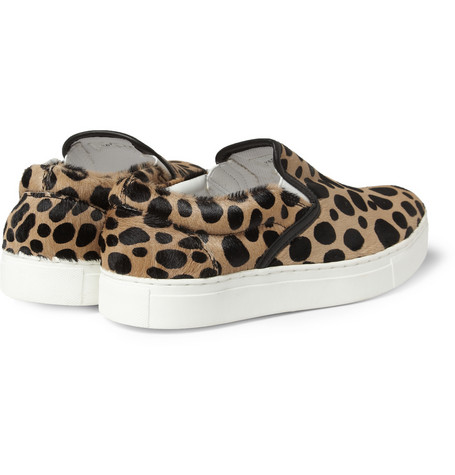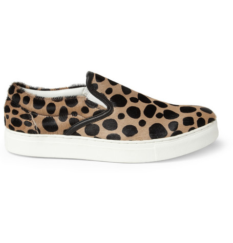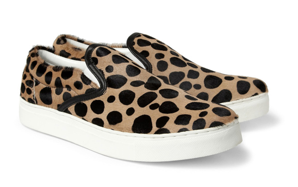 里原宿出身的 UNDERCOVER 主理人高桥盾,对於时装与街头的差异拿捏一向精準,往往推出的產品不论销售与否都成為注目焦点,Slip-Ons 鞋款於各大品牌中皆可见到,豹纹图样也并非特殊,但 2013年春夏 UNDERCOVER 利用圆点状豹纹搭配马毛皮妆点鞋面,中大底与内裡接採用纯白,简单且不喧宾夺主,对比鞋舌上的黑色饰边,UNDERCOVER 成功地把休閒鞋款注入高格调奢华的气息。不喜高调却注重质感的朋友们,可以参考入手了。