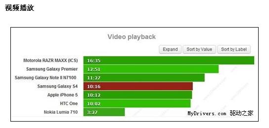 视频播放则是AMOLED屏幕的强项,但Galaxy S4只坚持了10小时16分钟,和iPhone 5差不多,相对来说也可以接受了。