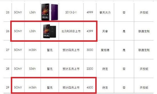 值得一提的是,在曝光的联通WCDMA 21M产品清单中还出现了一款名为索尼M36h的神秘新机。根据仅有的信息来看,该机将于四月上市,手机价格则为4500元左右,显然是一款定位高端的机型。