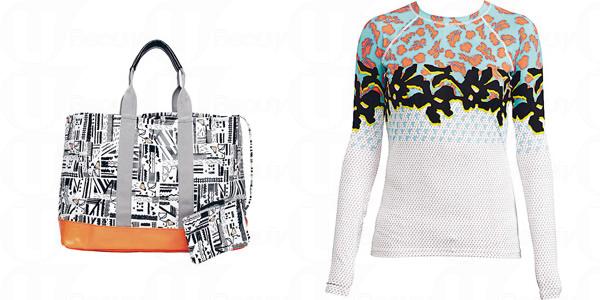 (左) 容量特大的防水沙滩袋,虽是黑白印花图案,底部却以鲜橙色作点缀,同样抢眼。($698)