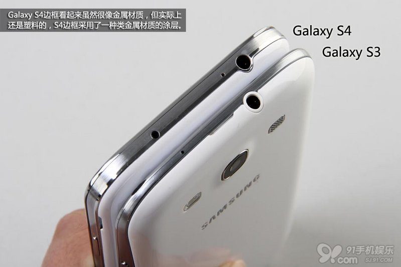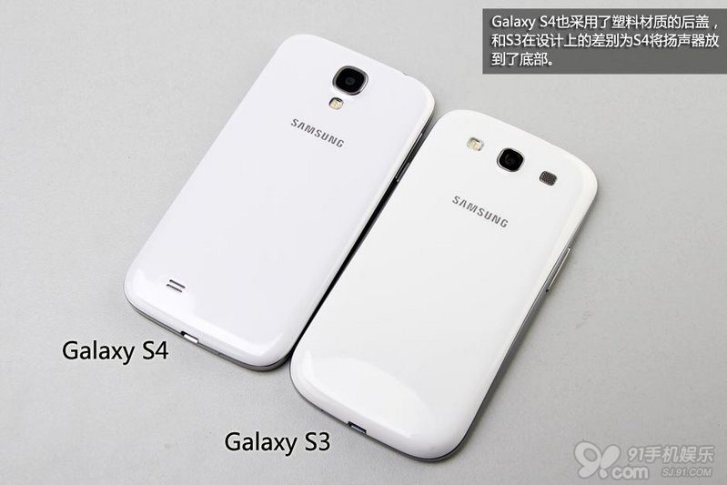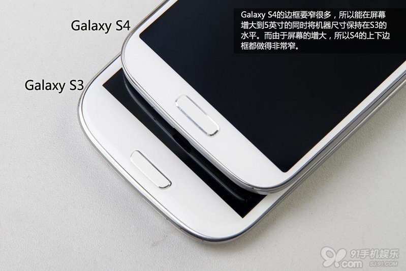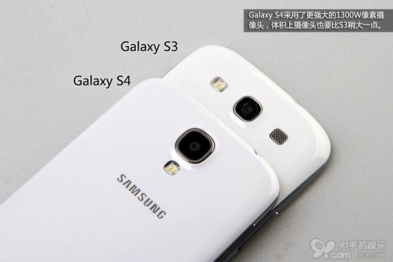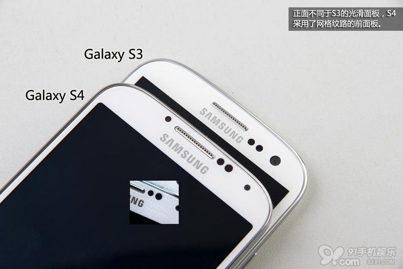 三星的全新旗舰Galaxy S4硬件配置强悍,配备了一颗1.8GHz的Exynos 5 Octa八核处理器(Exynos 5410,4个A15核心+4个A7核心,GPU为PowerVR SGX 544MP),并有2GB RAM,16GB ROM。相机方面为200万像素前置摄像头和1300万像素后置摄像头,并拥有着Smart scroll(智能滚动)、Smart stay(智能识别)以及Smart Pause(智能暂停)等特殊功能。而外观上面相对Galaxy S3又有什么区别呢,我们一起来看看。