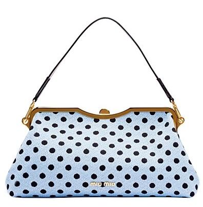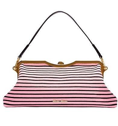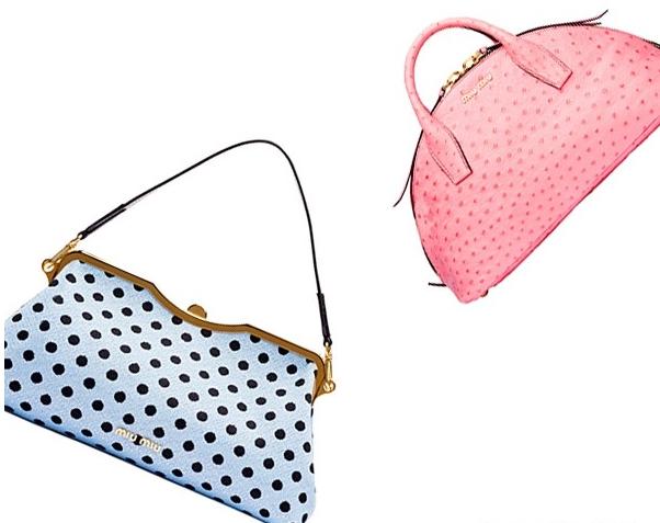 Miu Miu最近推出2013秋冬手袋系列。虽然Miu Miu的2013秋冬整个系列以深沉的暗调为主,但手袋却是粉嫩十足,条纹波点元素的运用释放出浓郁的少女情怀,其中不少手袋都是超大号的,出门想要带多少“装备”都不用担心喽!