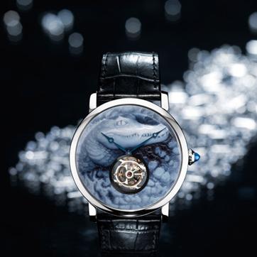 Cartier(卡地亚)倾注无比热情,大胆地将微妙的浮雕技术运用于制表艺术打造这款腕表。天然玛瑙微妙的渐变蓝色不禁令人想起大海,一条惟妙惟肖的鳄鱼在宝石切割师的鬼斧神工下从海浪中浮现出来。