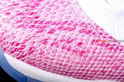 Air Jordan XI 在近年的火热程度有目共睹,而今年除了在6月发售的黑白配色低帮男款及“黑色星期五”开卖的“Laney”全黑配色外,近日又有一款全新配色的Air Jordan XI Low曝光。这款Air Jordan XI Low采用了在2001年曾推出的蛇纹设计元素,在AJ11原本漆皮的位置换成了粉红色的蛇纹材质,而鞋底则继续沿用了大受欢迎的蓝色水晶底。
