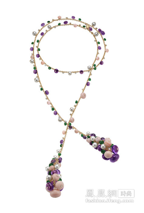 BVLGARI宝格丽顶级珠宝系列玫瑰金项链镶嵌23颗南海珍珠、珊瑚、42颗紫水晶(174.39克拉)和38颗圆形切割祖母绿(42.39克拉),密镶钻石(5.58克拉)