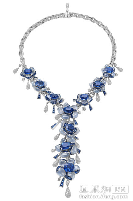 BVLGARI宝格丽顶级珠宝系列白金玉髓项链镶嵌10颗蓝宝石(55.79克拉),蓝宝石(24.87克拉),密镶钻石(40.57克拉)。