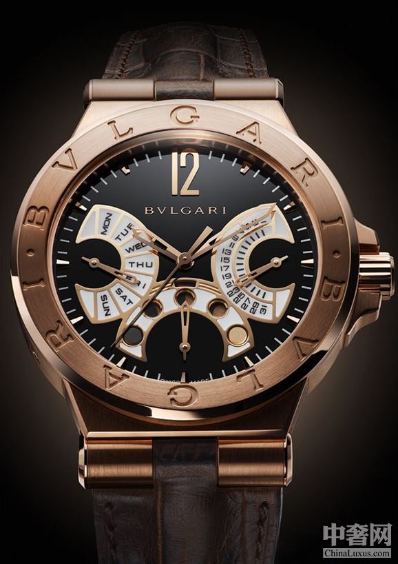新款Diagono Moonphase 腕表及Diagono Calibro 303 计时码表是瑞士高级精密制表的典范,也是BVLGARI宝格丽不懈追求完美结构与设计的结晶。