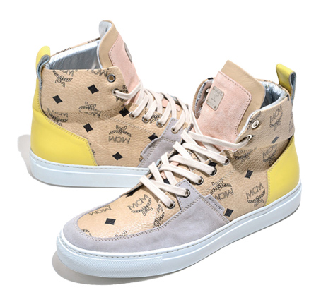 MCM特别邀请德国时装设计师Michael Michalsky推出MCM by MICHALSKY球鞋系列。我想原因之一莫非是后者曾在1995至2006春季出任''全球创意总监''六年,丰富的球鞋经验?以高筒皮革球鞋URBAN NOMAD II HIGH为蓝本,放弃以往常见的干邑、红、蓝及白色MONOGRAM图腾设计,改以简朴的杏色 MONOGRAM 图腾配合灰及淡黄3色作鞋身设计。这一次的作品确实有球鞋+包袋的结合体感觉。