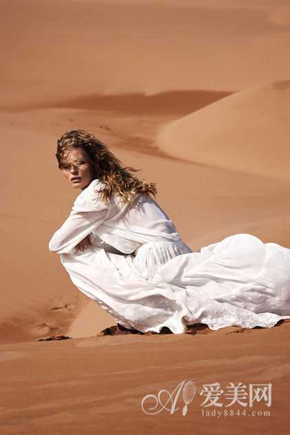 无垠沙漠间的纯白搭配,塑造出一位奔走在寻找生命真谛的途中的勇敢女性。