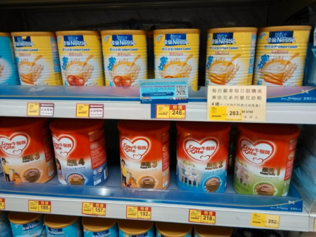 总之奶粉不缺货了,基本上都有,当然也没看完,不知道其它牌子是否有缺的;问了一下售货员,都说现在情况好点,基本上都有……看来限购也算是效果明显,难怪英国限、德国也限啊……。,呵呵 ,原来HK也学得真是快,当然了有人欢喜有人愁;