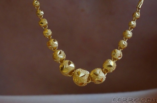 这条项链购于六福~工费折扣最大~五折~看着挺粗挺唬人,其实珠子是镂空的~才11克多~