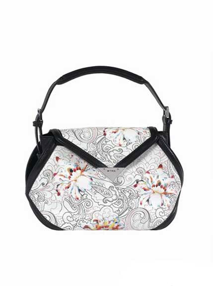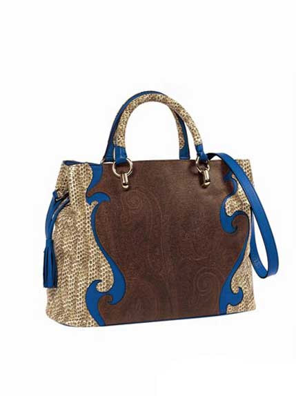 Etro 2013春夏手袋大量添加了与服装保持一致风格的印花,包括手绘的天堂鸟、蝴蝶和佩斯利花卉。
