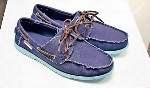 City 系列的男装帆船鞋,其帆布製鞋身虽然以自然色系為主调,却大胆选用荧光色橡胶鞋底作配。($990)