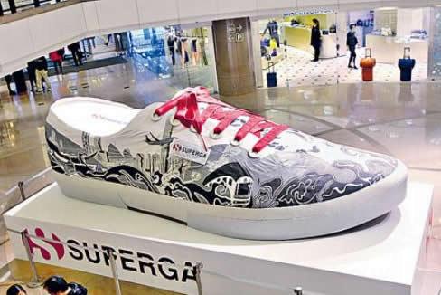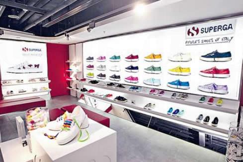 Superga 首间专门店的装修以红、白两色為主调,中央位置缀有 Classic 2750 的巨型广告板吸引大家的视綫。