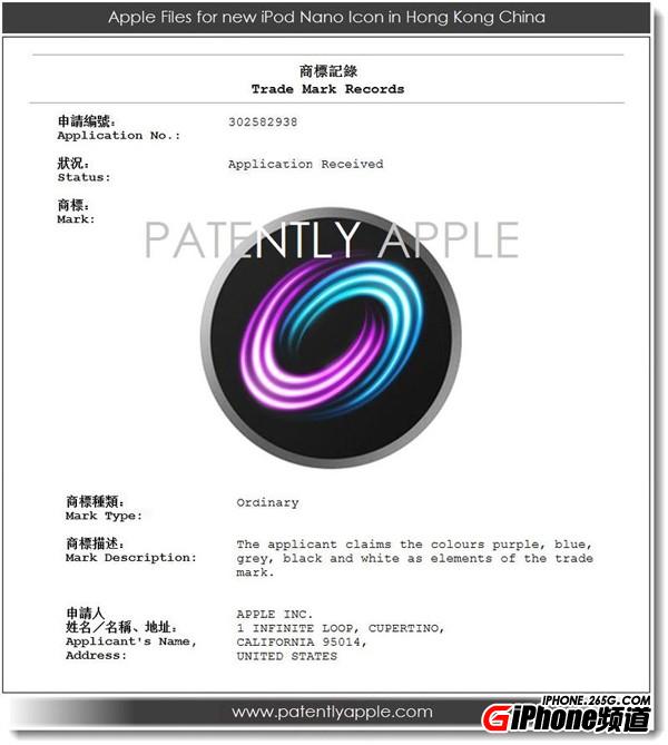 除 了这两项专利外,中国香港专利商标局今天还公布了一项苹果新的商标申请,编号为 302582938,描述的是一款全新的 iPod nano 图标(下 图)。外媒 PatentlyApple 表示此前已经见过这款图标,只是不知道该图标代表的是什么服务。苹果在商标申请文件中也并未提及该商标代表的服 务或功能。