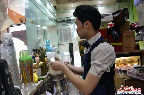 作为老板,李锦荣和店里的伙计没多大区别,送外卖、端盘子、榨果汁。