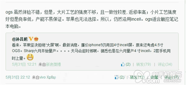 看过了之前所谓的低价iPhone 5的谍照后,熟悉手机产业链的《国际电子商情》首席分析师孙昌旭给出的最新消息称,在大屏问题上,目前的苹果比较排斥,其实确切的说应该是,现在大屏的良率低,产能不易保证,苹果无法选择。