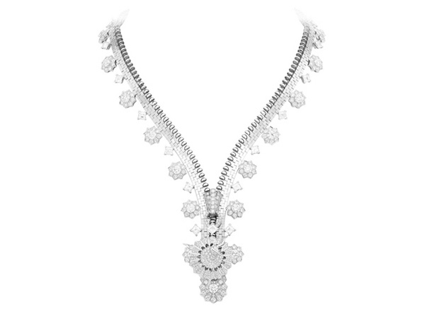 Zip项链设计精巧,无疑是梵克雅宝最破格的殿堂级珠宝之一。 Zip项链的意念于1930年代后期诞生,当时世家其中一位尊贵支持者温莎公爵夫人,向世家艺术总监兼创办人女儿Renee Puissant 提出一个建议,将拉链化作珠宝设计的灵感。及至1951年,Zip项链以独特的两用形态诞生︰拉开后可以成为项链,拉上后可以化作手链,设计完全体现世家对创新和多用珠宝的追求。