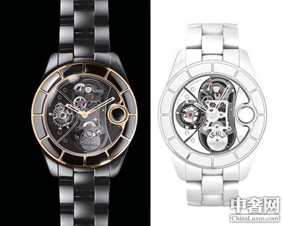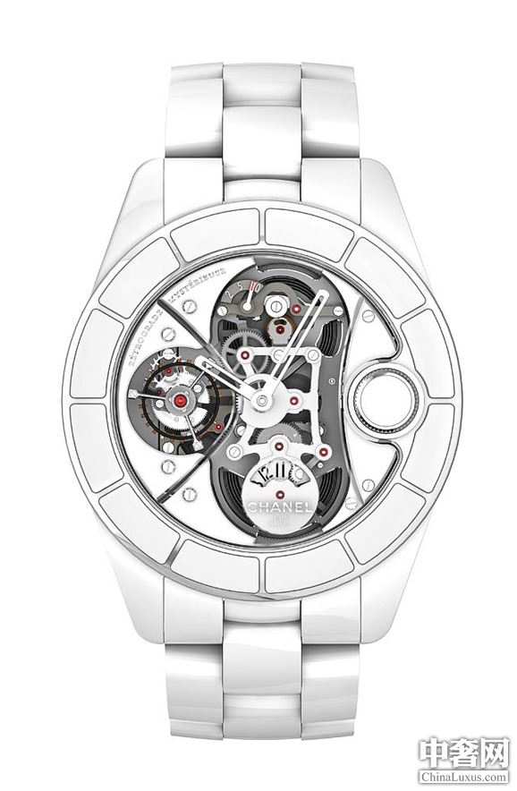 在外观上,原来表底本应该设在表壳右侧的表冠,被奇妙地移师至面盘的3时位置,令佩戴者在调时间时同样便利自若。但这种设计使得表盘上的表冠会阻挡分针的运行, 因此,分针行至10分时将以300度逆跳的方法运作,而10~20分这段时间,便由6时位置的10分钟显示窗口来实现。另外,隐藏于2点与4点的陶瓷表圈上的离合按钮,能够轻松切换腕表的手动上链与调校时间功能。制表师们的创新思想,完全在J12 Retrograde Mysterieuse腕表上得到体现。
