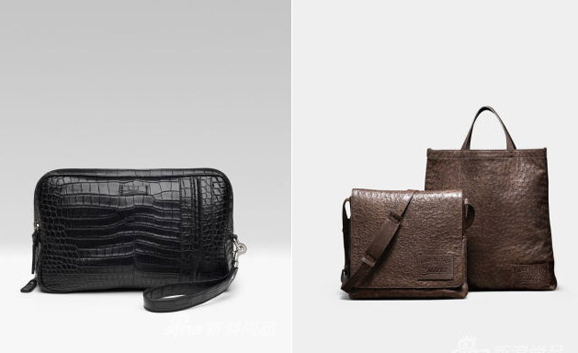左:Gucci黑色鳄鱼皮公事包 右:Gucci棕色鸵鸟皮背包和旅行包温和型父亲