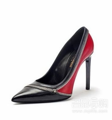 拉链设计加上红白皮质的拼接,有种奇特的戏剧效果。