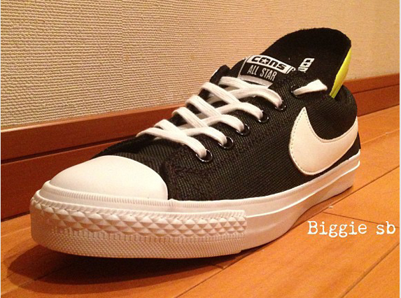 Nike将旗下Converse及Nike SB展开一回别开生面的跨界联名合作,此双所曝光的Converse x Nike SB All Srar Blazer Low有著让人称讚的绝美面貌。全鞋身以All Star的定番鞋型及帆布素材打造。运用上Blazer的专属Nike标誌為设计。鞋内藏有Lunarlon鞋垫配置。同时於鞋舌标上可见Converse字样。 绝对是双令人玩味的绝美联名作。唯此双Converse x Nike SB All Srar Blazer Low目前尚未有更多进一步消息,各位鞋迷们敬请期待。