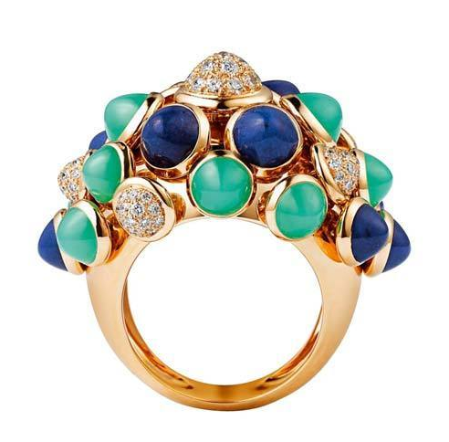 Paris Nouvelle Vague戒指:黄K金,青金石,绿玉髓,钻石