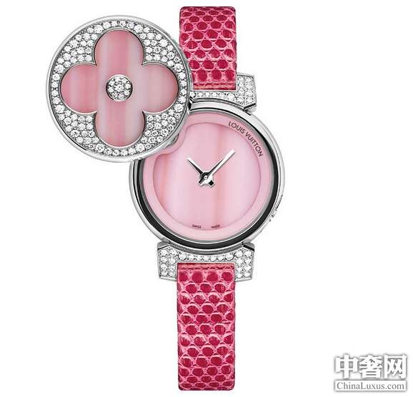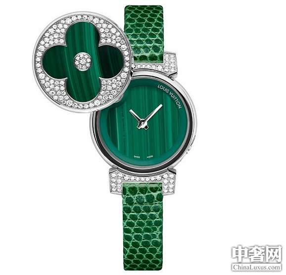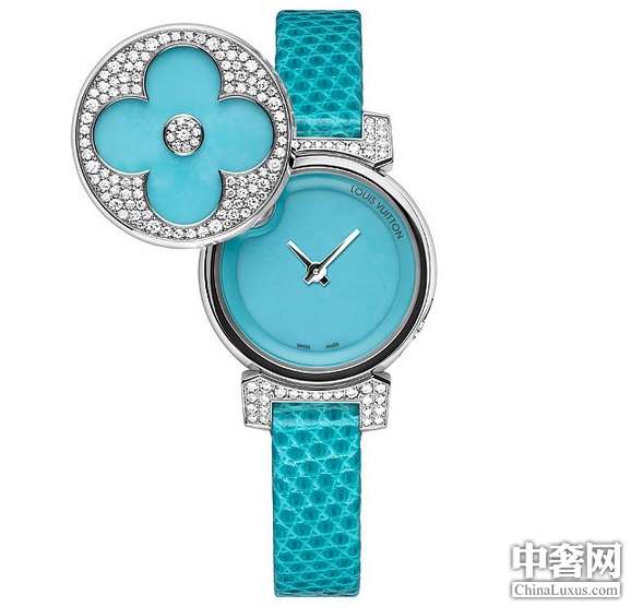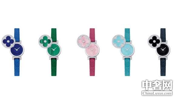 Tambour Bijou Secret 珠宝腕表采用了黄金和珍珠母两种材质,现加入青金石、孔雀石、东陵石、粉色珍珠母以及绿松石五款彩色半宝石表盘表款全新登场,散发耀眼光芒。