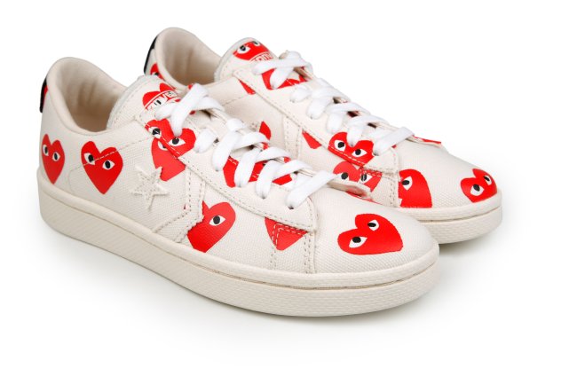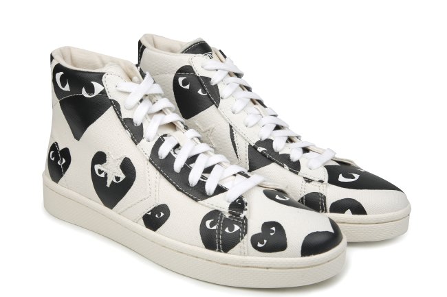 身為潮人的妳,家中一定有一两件COMME des GARCONS和一对Converse看门口!COMME des GARCONS PLAY继2009年与Converse Chuck Taylor All Star及2011年与Converse Jack Purcell联名合作之后,今年再度与Converse合作推出近年甚受欢迎的Converse Pro Leather合作推出联乘系列。